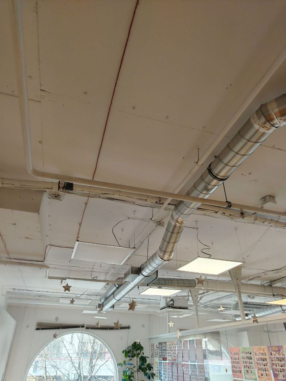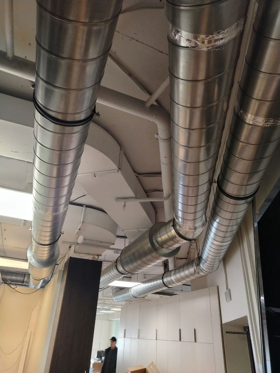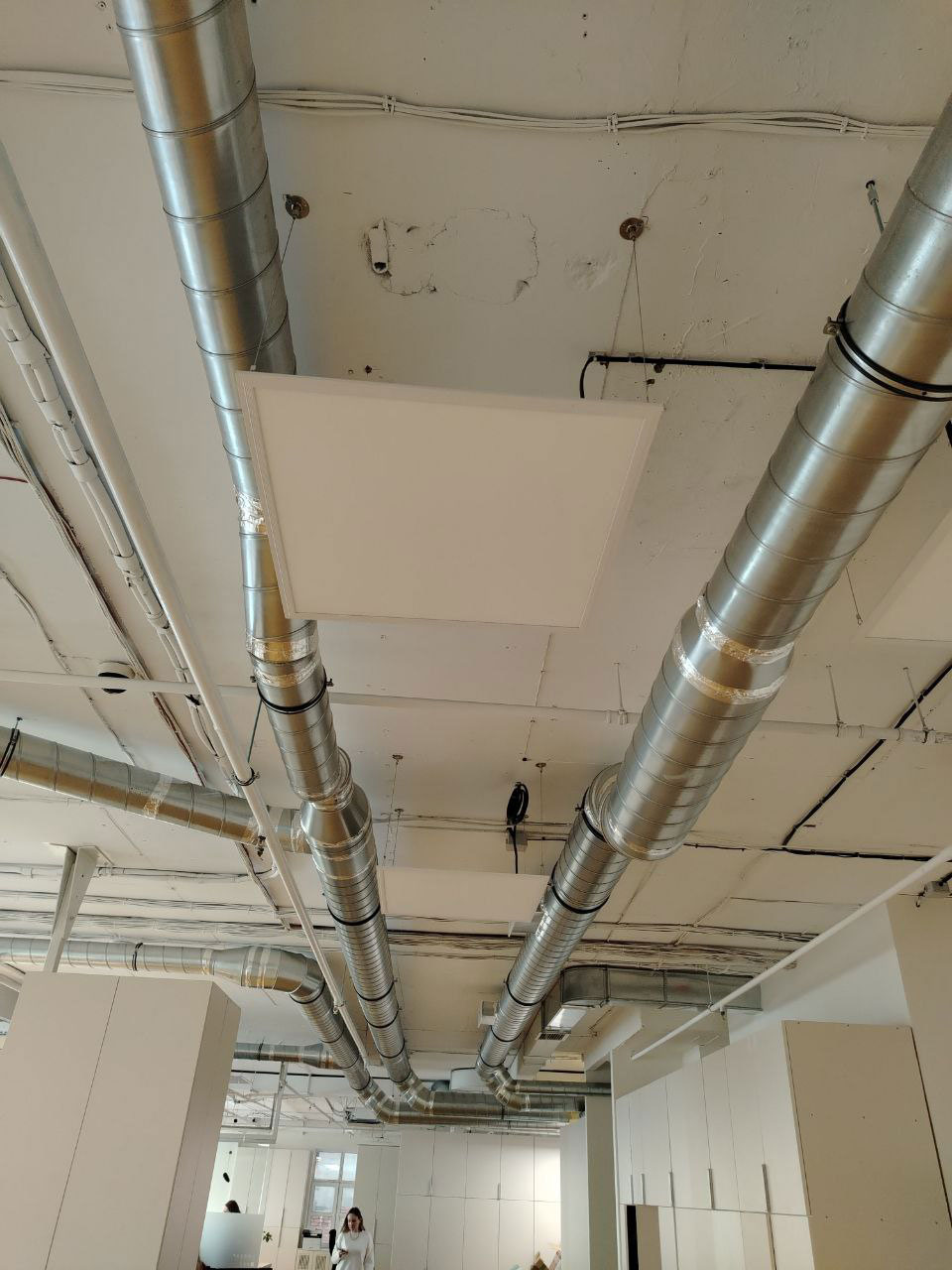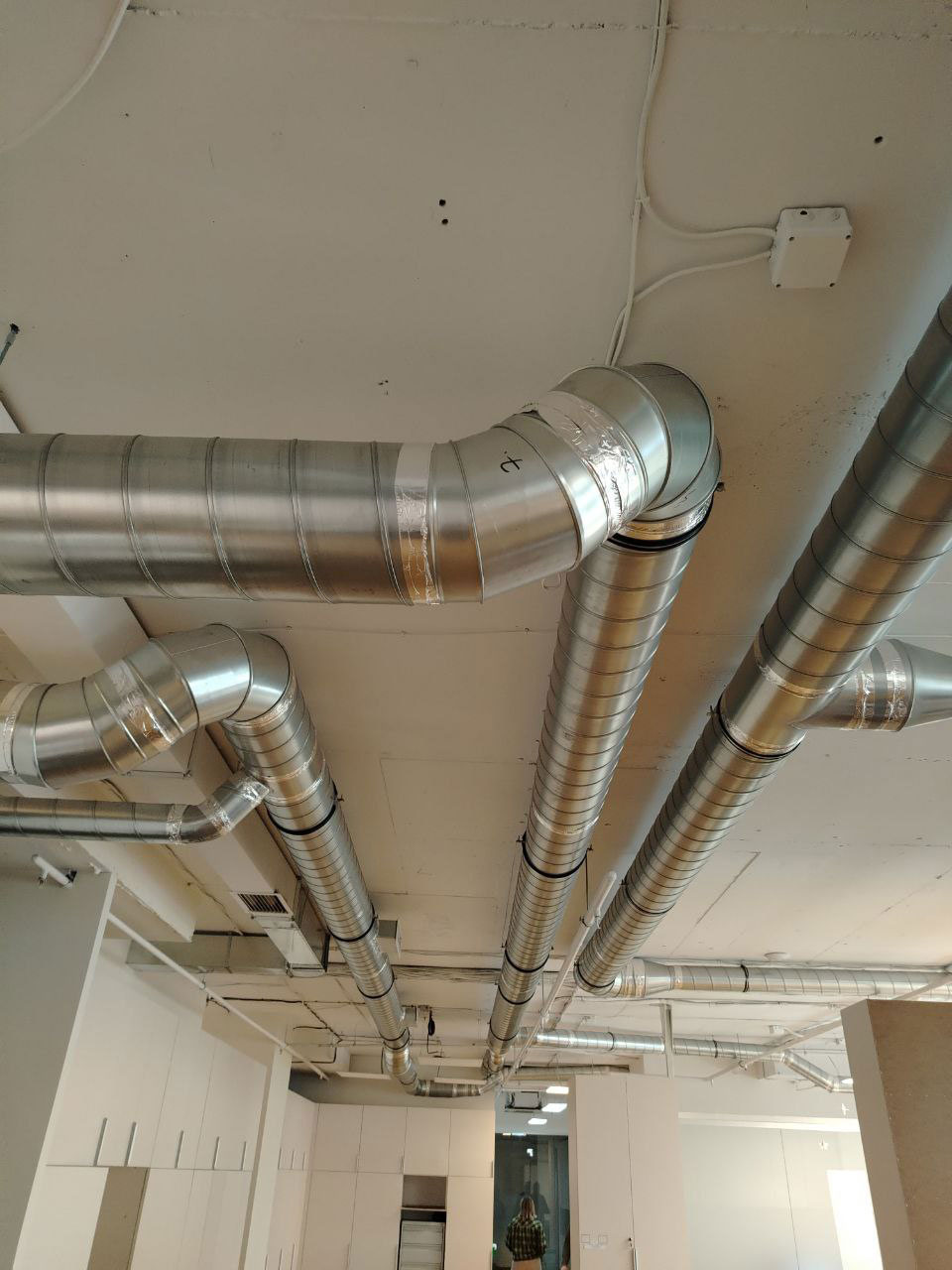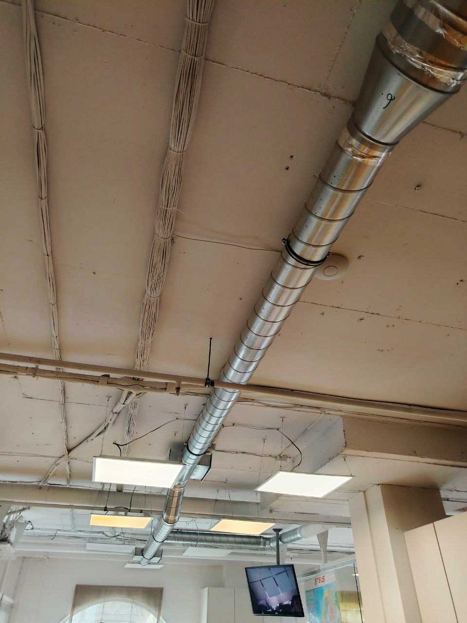 - Для эффективного распределения воздуха была выполнена разводка оцинкованными воздуховодами.