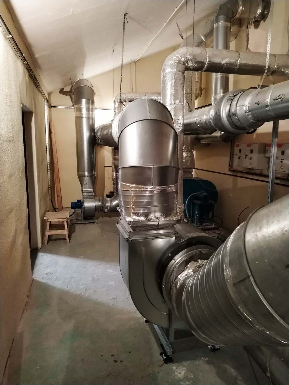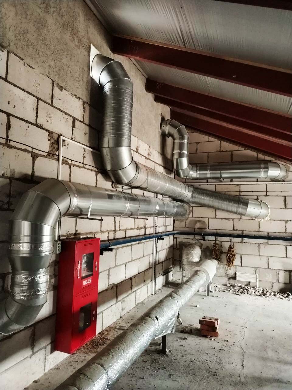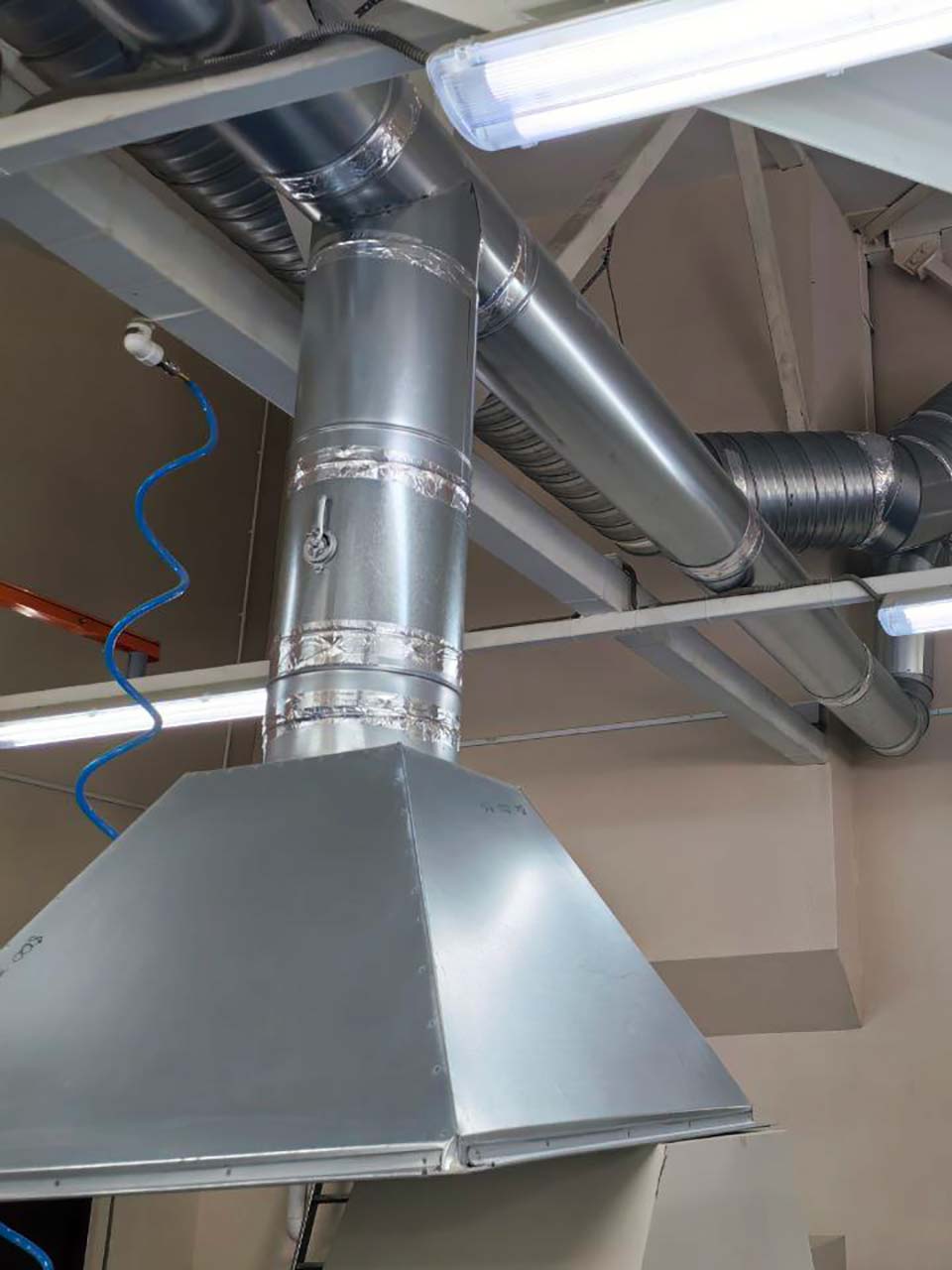 - Проложена сеть металлических воздуховодов с теплоизоляцией, подключенных к каждому зонту для транспортировки загрязненного воздуха