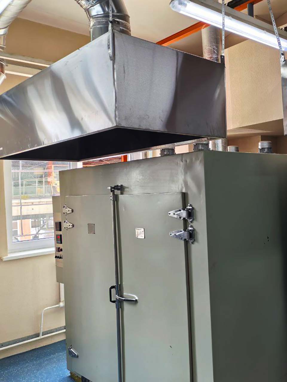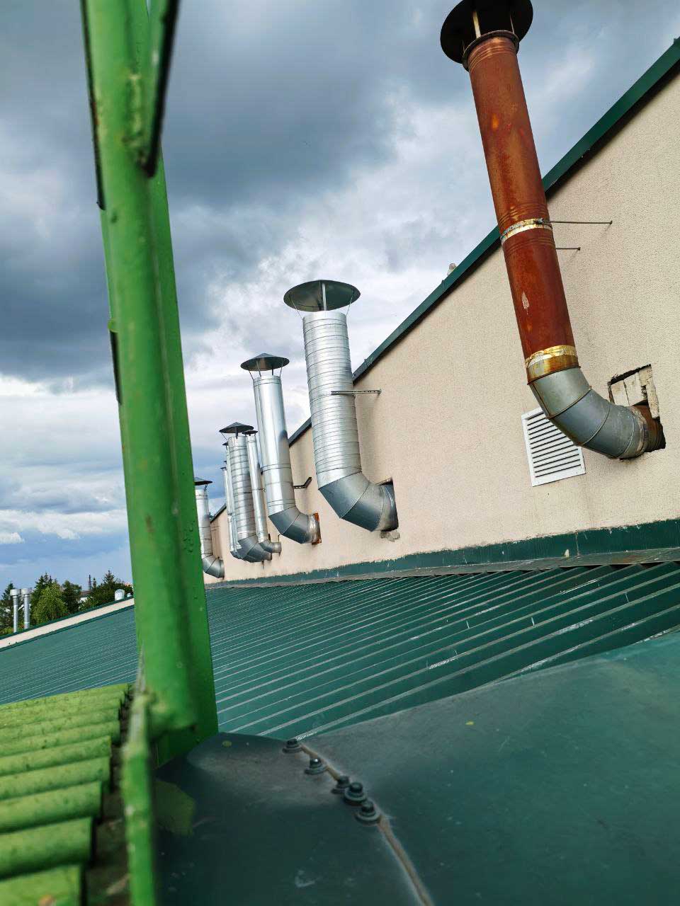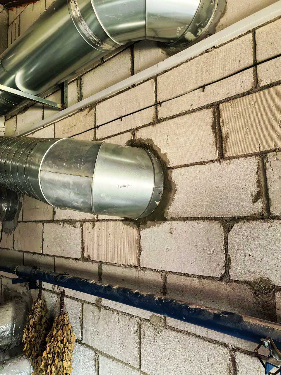 - Проложена сеть металлических воздуховодов с теплоизоляцией, подключенных к каждому зонту для транспортировки загрязненного воздуха